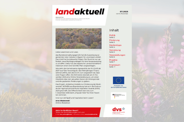 Die neue Ausgabe des Newsletters landaktuell der Deutschen Vernetzungsstelle Ländliche Räume ist erschienen. Im Mittelpunkt stehen diesmal aktuelle Entwicklungen in…