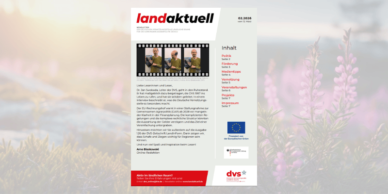 Thematisch blickt die neue Ausgabe unter anderem auf die Zukunft der Gemeinsamen Agrarpolitik: Der Europäische Rechnungshof mahnt in einer aktuellen Stellungnahme zur GAP ab 2028 mögliche Risiken durch unklare Finanzplanung an – ein Thema, das auch für LEADER-Akteure und regionale Entwicklungsstrategien relevant bleibt. Zudem widmet sich das DVS-Magazin „LandInForm“ zum Auftakt des Jahres der Weidelandschaften der Bedeutung von Schaf- und Ziegenhaltung für ländliche Regionen.