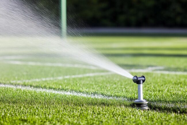 In Burgstall wird der Sportplatz mit einer automatischen Beregnungsanlage ausgestattet. Das spart Wasser und sichert die Nutzung für Schule und Verein.